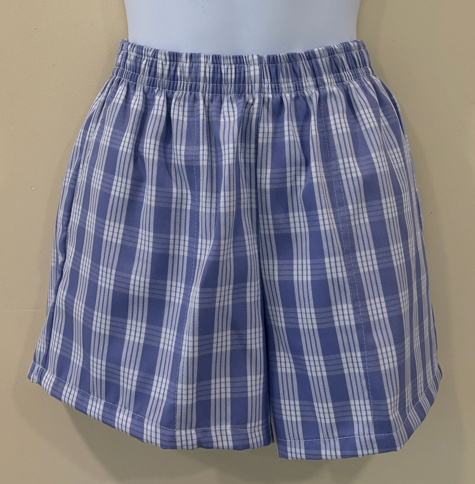 Pretty periwinkle in the Palaka print